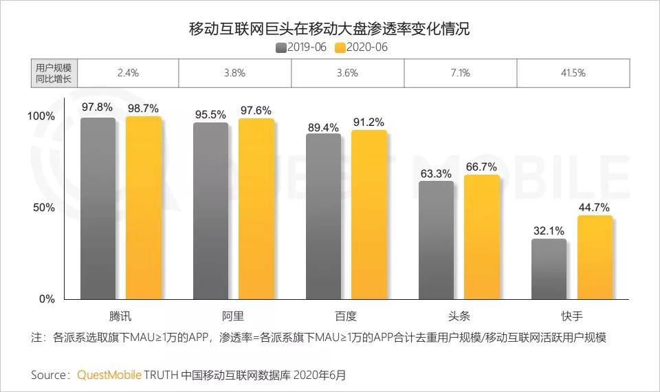 BAT除了用户数齐齐突破10亿之外,在移动大盘的渗透率方面,也以超过90%的渗透率,远远超过了其它厂商。